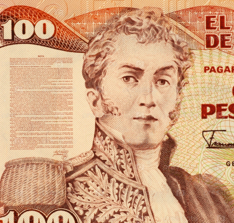 Генерал Антонио Нарино на купюре 100 песо 1991 года из Колумбии