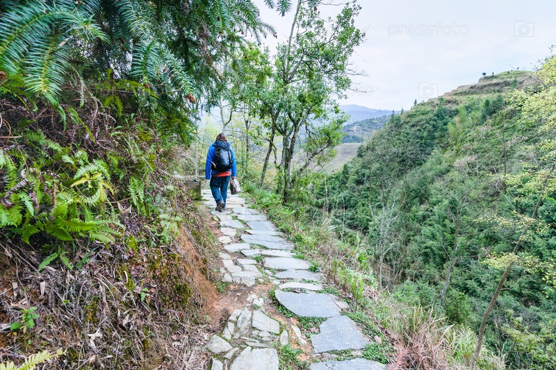 Турист на пути на горном склоне в Дажае