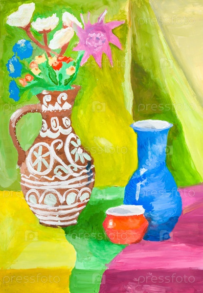 Натюрморт с керамическими кувшинами на столе