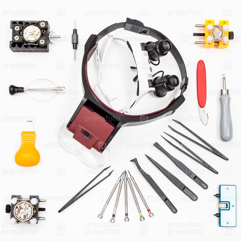 Различные инструменты для ремонта часов