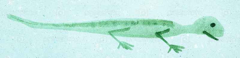 Зеленая ящерица на синей цветной бумаге