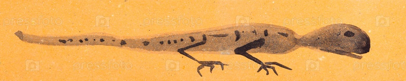 Эскиз ящерицы на оранжевой цветной бумаге