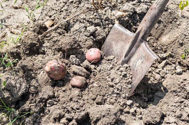 Выкапывая спелый картофель в саду