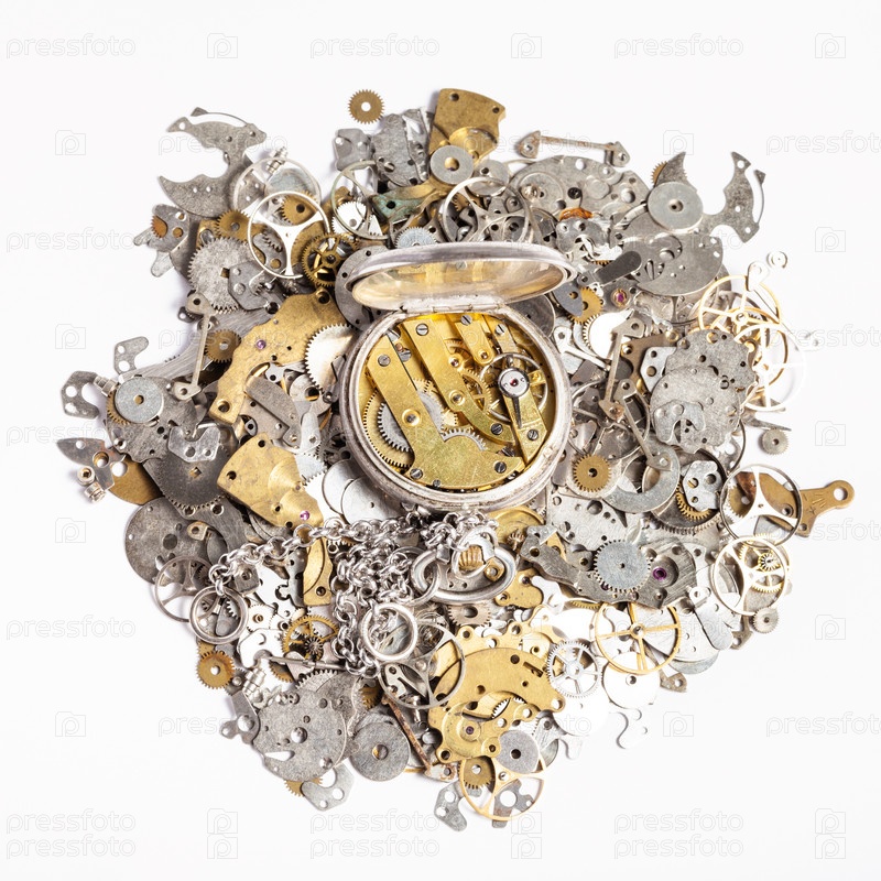 Карманные часы на куче запасных частей