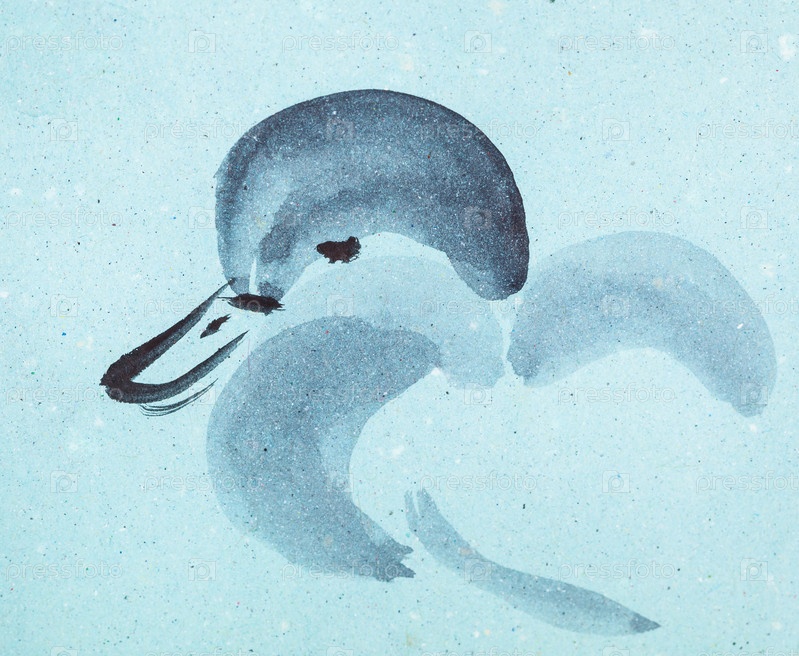 Эскиз утка на синей цветной бумаге