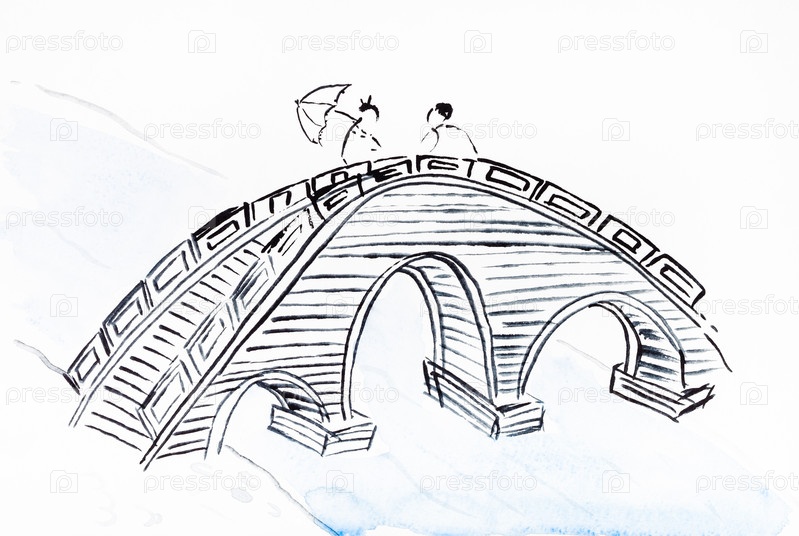 Мост через реку на белой бумаге