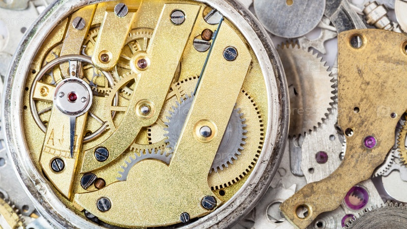 Механические часы на куче запасных частей