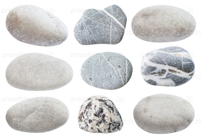 Множество различных серых галечных камней