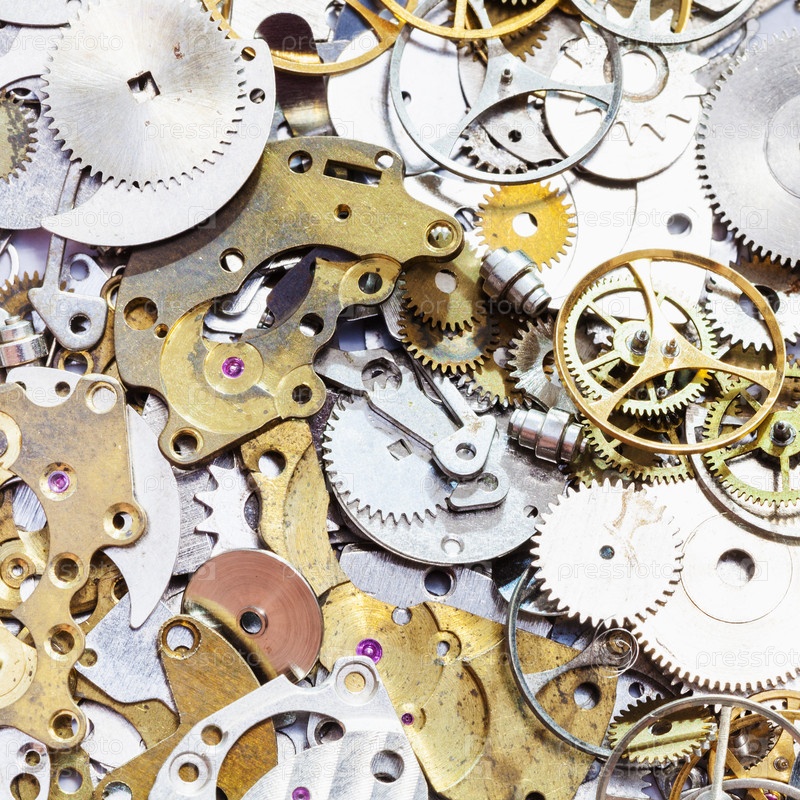 Куча старых запасных частей часов