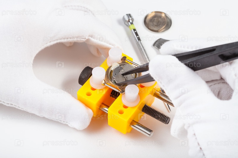 Замена батареи кварцевых часов с помощью пинцета