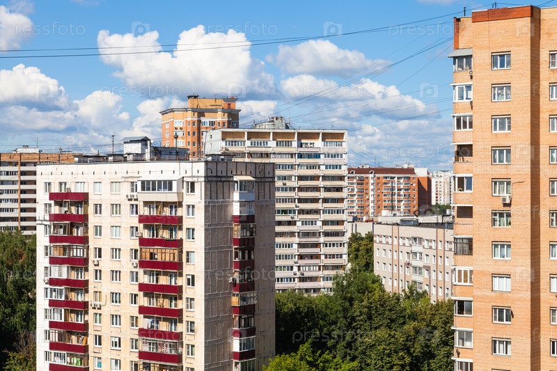 Жилой район в городе Москве в солнечный день