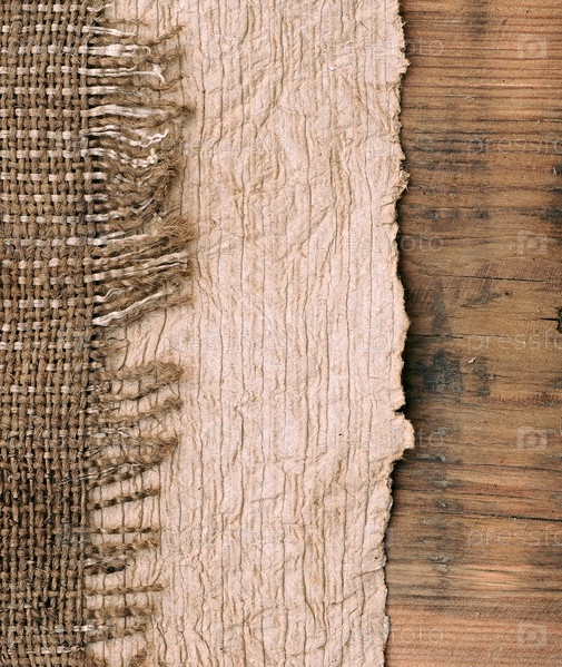 Старая бумага с мешковиной на деревянном фоне