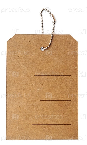 Картонная бирка на белом фоне