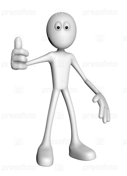 Белый человечек с большим пальцем вверх. 3D иллюстрация
