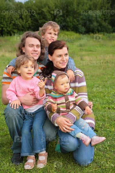 Большая семья на траве
