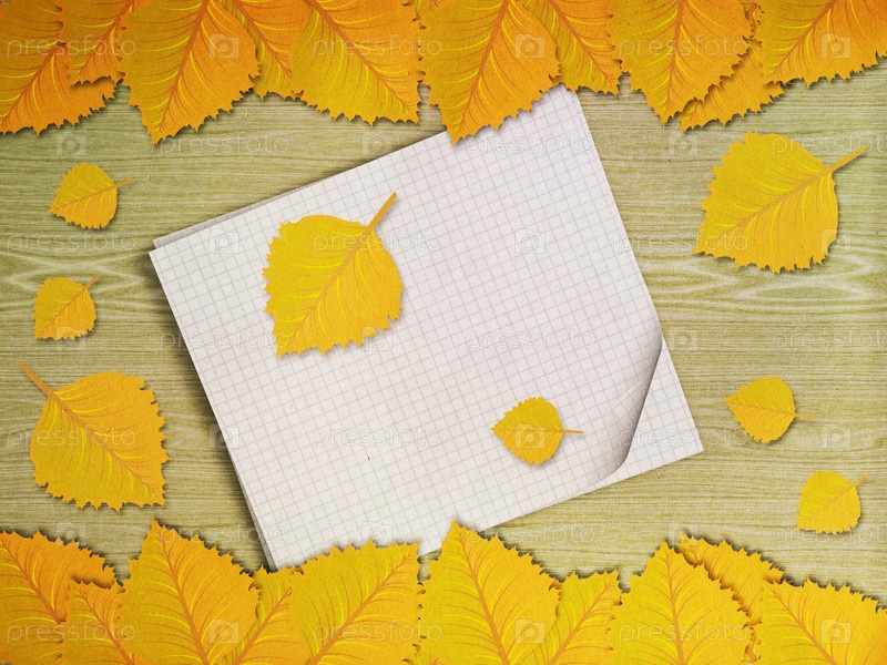 Желтые листья на деревянном фоне