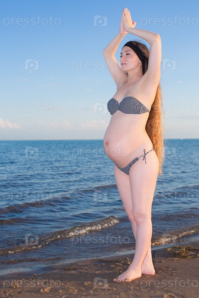 Беременная женщина на берегу океана