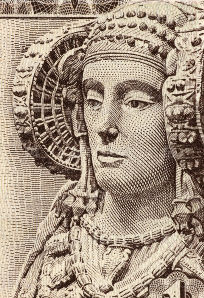 Леди Эльче на банкноте 1 песета 1948 года из Испании. Бюст пятого или четвертого века до н. э