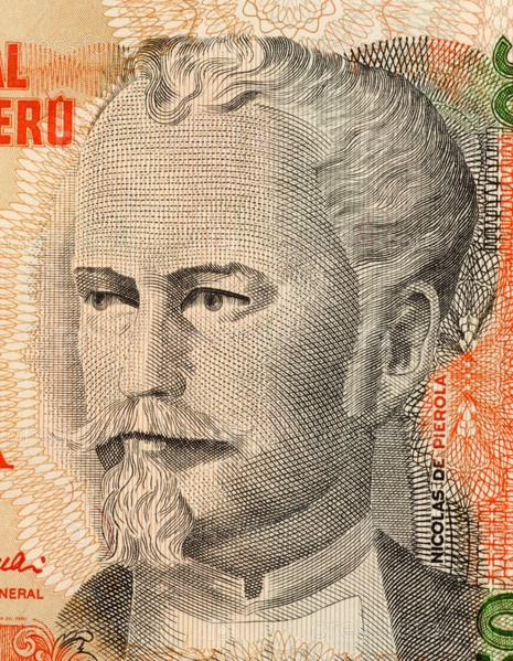 Николя де Пьерола на купюре 50 инти 1987 года из Перу. Министр финансов Перу и дважды президент Республики