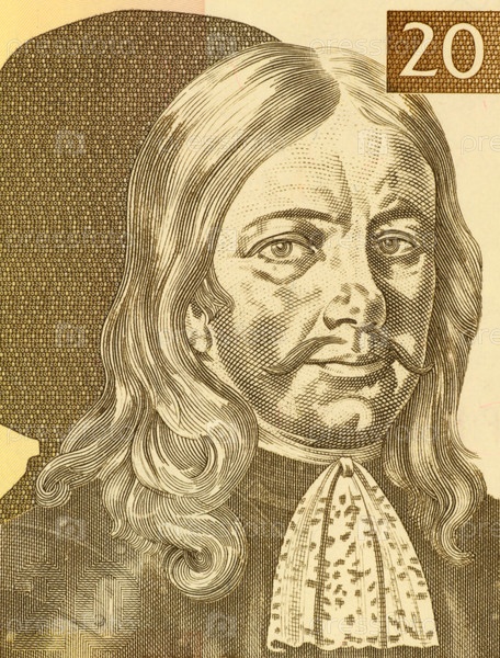 Янез Вайкард Вальвазор (1641-1693) на банкноте 1992 года из Словении. Дворянин, ученый, эрудит и член Королевского общества