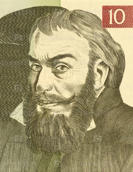 Примоз Трубар (1508-1586) на купюре 1992 года из Словении. Протестантский реформатор, основатель и первый руководитель протестантской церкви