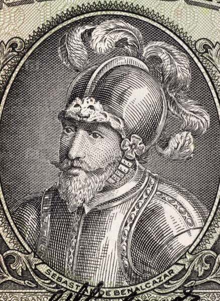 Себастьян де Белаказар (1479 или 1480-1551) на купюре 10 сукре 1988 года из Эквадора. Испанский конкистадор
