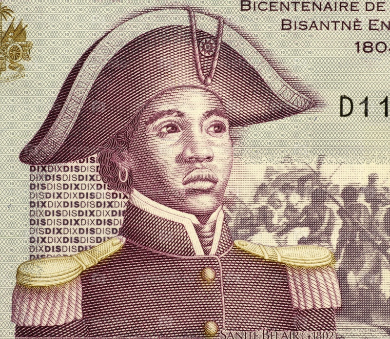 Саните Беле (1781-1805) на купюре 10 гурдов 2004 года из Гаити. Борец за свободу и революционер, сержант Армии Туссена Лувертюра
