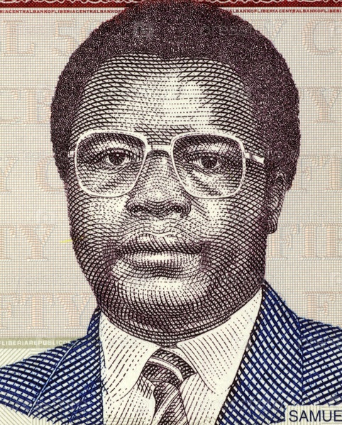 Сэмюэл Доу (1951-1990) на банкноте 50 долларов 2009 года из Либерии. 21-й президент Либерии