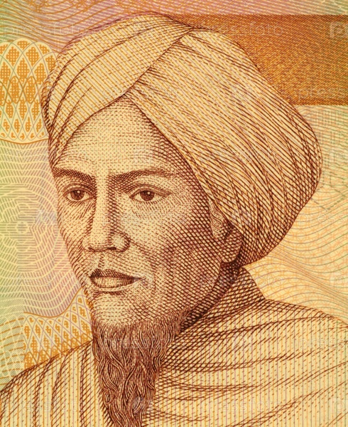 Туанку Имам Боньоль (1772-1864) на купюре 5000 рупий 200 года из Индонезии. Герой Индонезии в борьбе против голландского правления