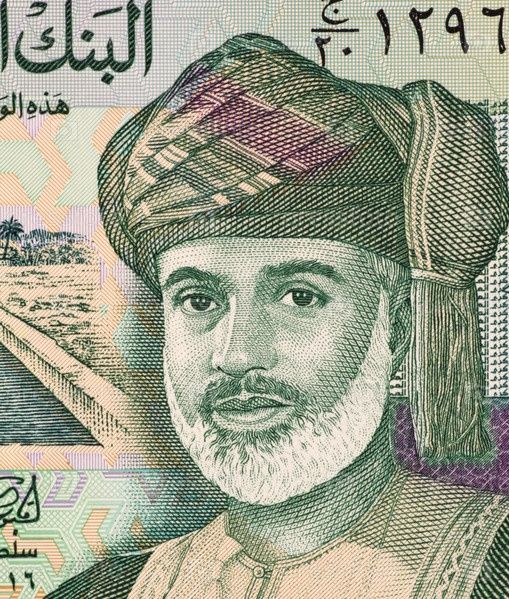 Султан Кабус (1940-) на купюре 100 байз 1995 года из Омана. Султан Омана