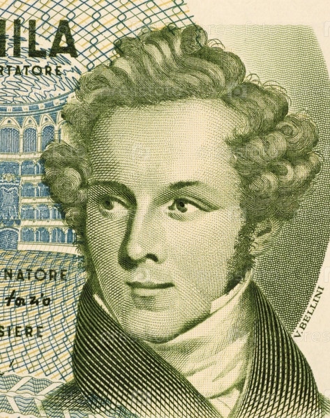 Винченцо Беллини (1801-1835) на банкноте в 5000 лир 1985 года из Италии. Итальянский оперный композитор