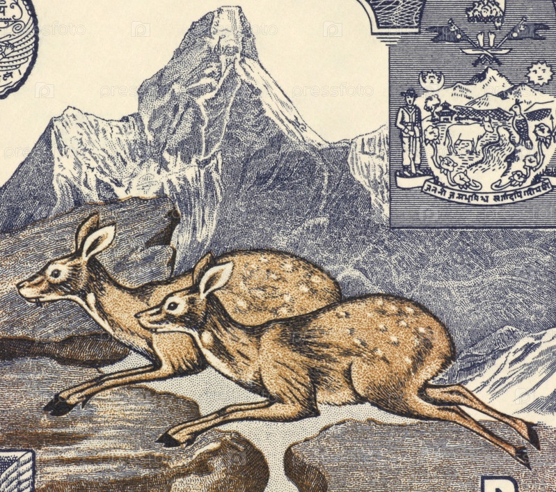 Олень на банкноте 1 рупия 1974 из Непала