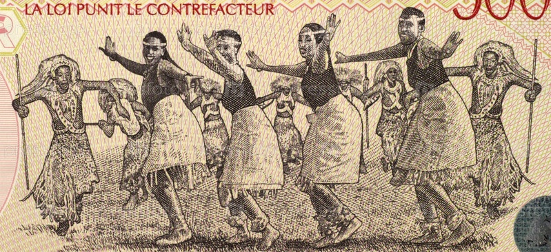 Танцоры на купюре 5000 франков 1998 года из Руанды