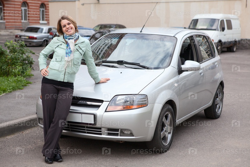 Счастливая женщина стоит перед собственным автомобилем