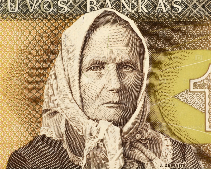 Портрет литовской писательницы Юлии Жемайте (1845 — 1921) на банкноте в 1 лит 1994 года