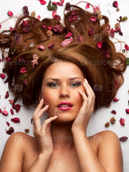 Красивая молодая женщина с лепестками цветов