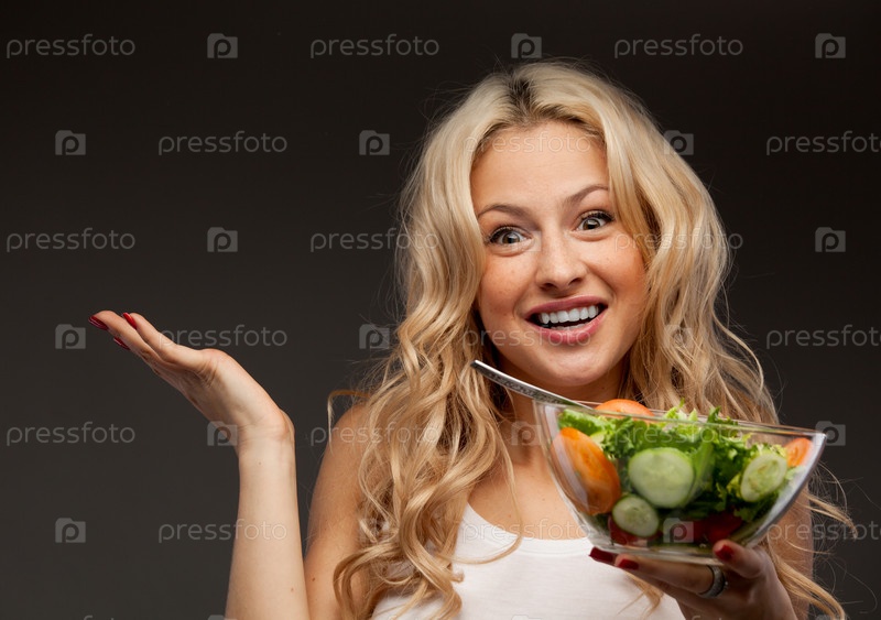 Счастливая здоровая женщина с салатом