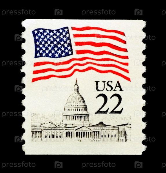Патриотическая марка США с изображением Капитолия и флага