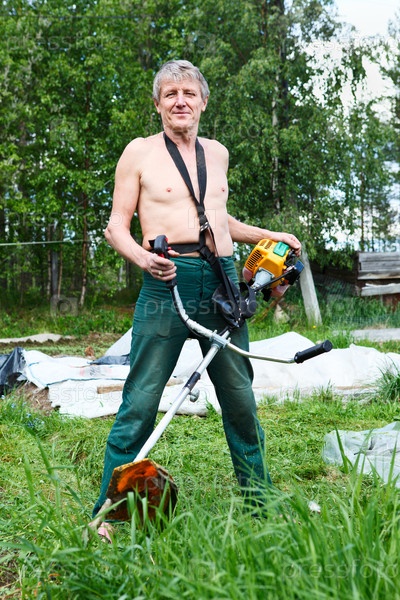 Мужчина-газонокосильщик