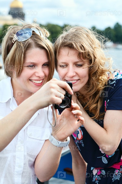 Две женщины смотрят на экран фотокамеры