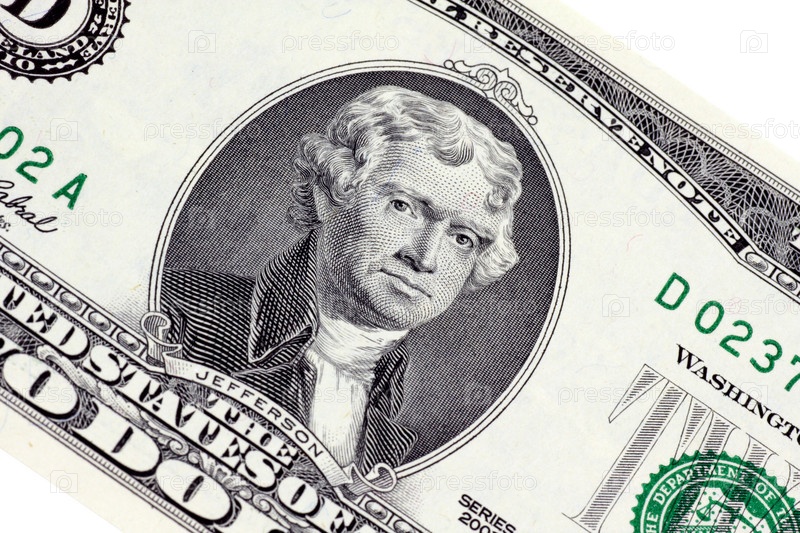 Портрет Томаса Джефферсон на банкноте в 2 доллара