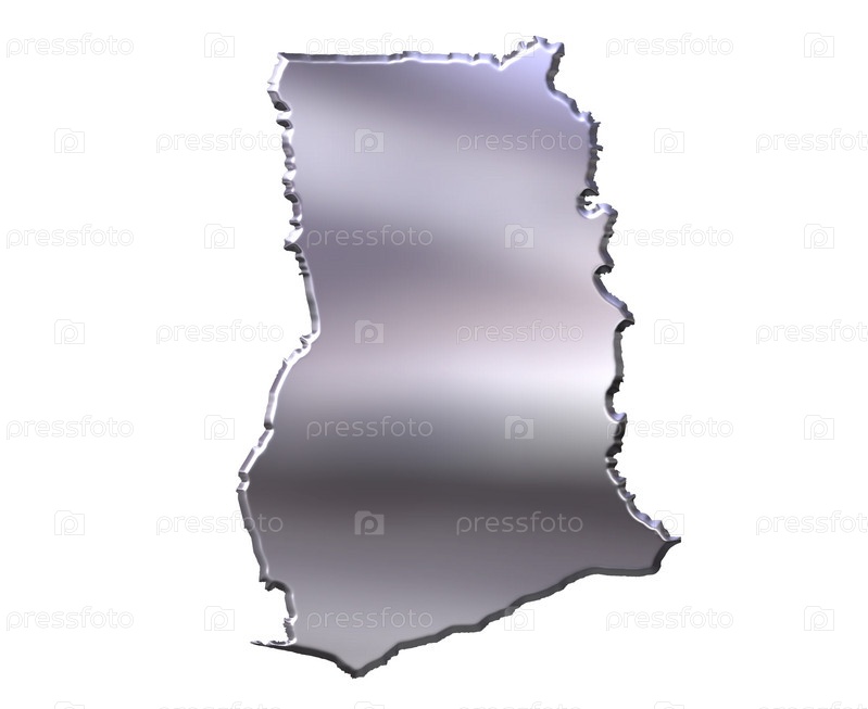 Гана. 3d Серебряная карта, изолированная на белом фоне