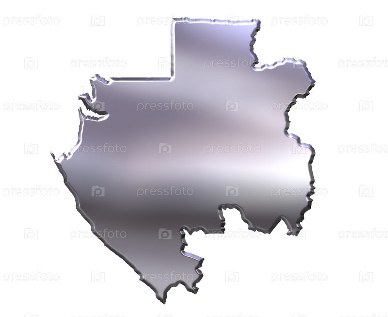 Габон. 3d Серебряная карта, изолированная на белом фоне