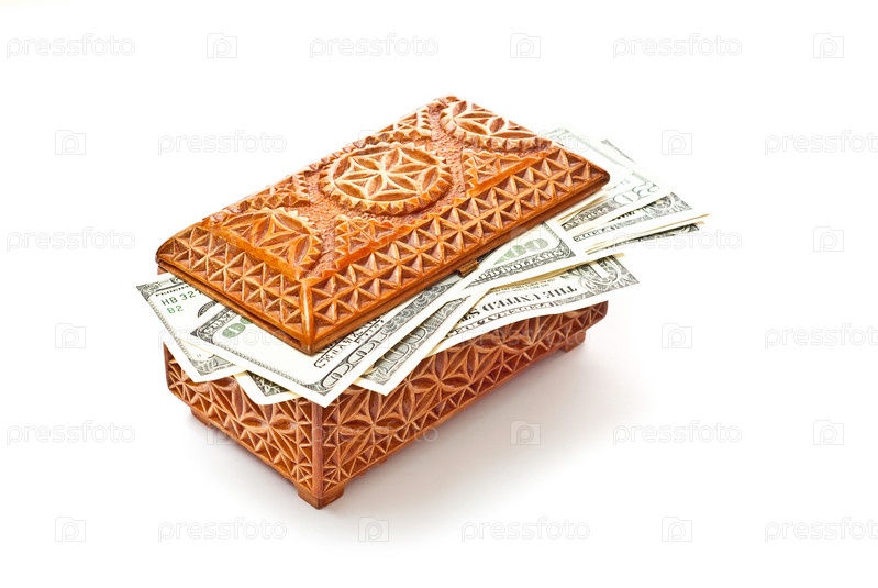 Доллары в резной деревянной шкатулке