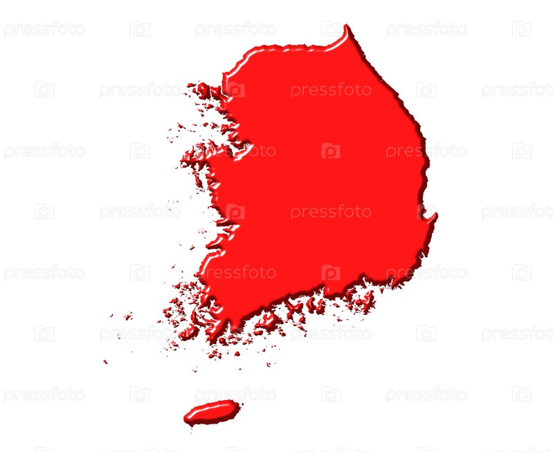 3D-карта Южной Кореи, изолированная на белом фоне