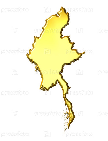 3d золотая карта Мьянмы, изолированная на белом фоне