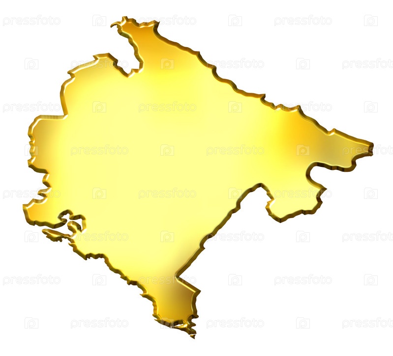 3d золотая карта Черногории, изолированная на белом фоне