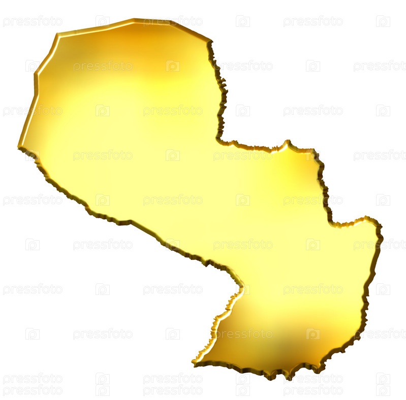 3d золотая карта Парагвая, изолированная на белом фоне