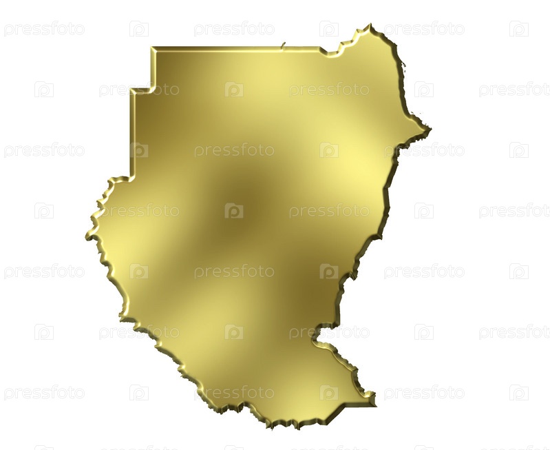 Золотая карта Судана на белом фоне