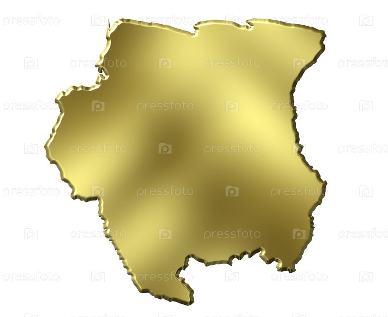 Золотая карта Республики Суринам на белом фоне